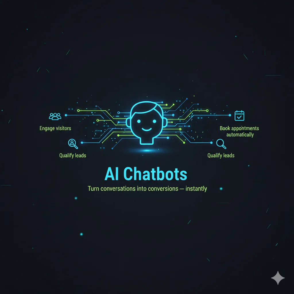 A: Our AI chatbots turn website visitors into qualified leads by engaging them instantly — answering questions, collecting contact info, and booking appointments automatically. For Chicago-based small businesses, this means more conversions, fewer missed leads, and stronger online engagement.